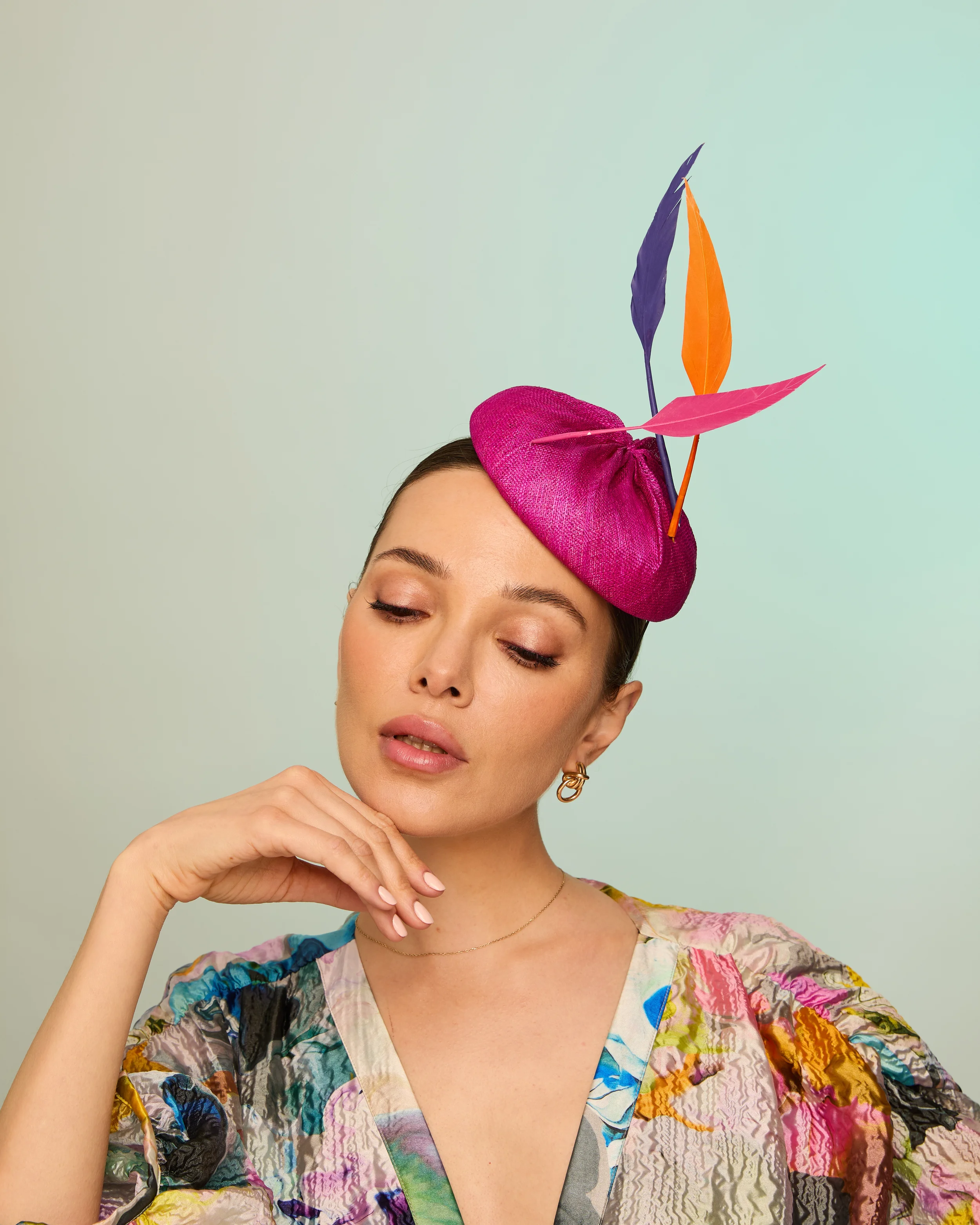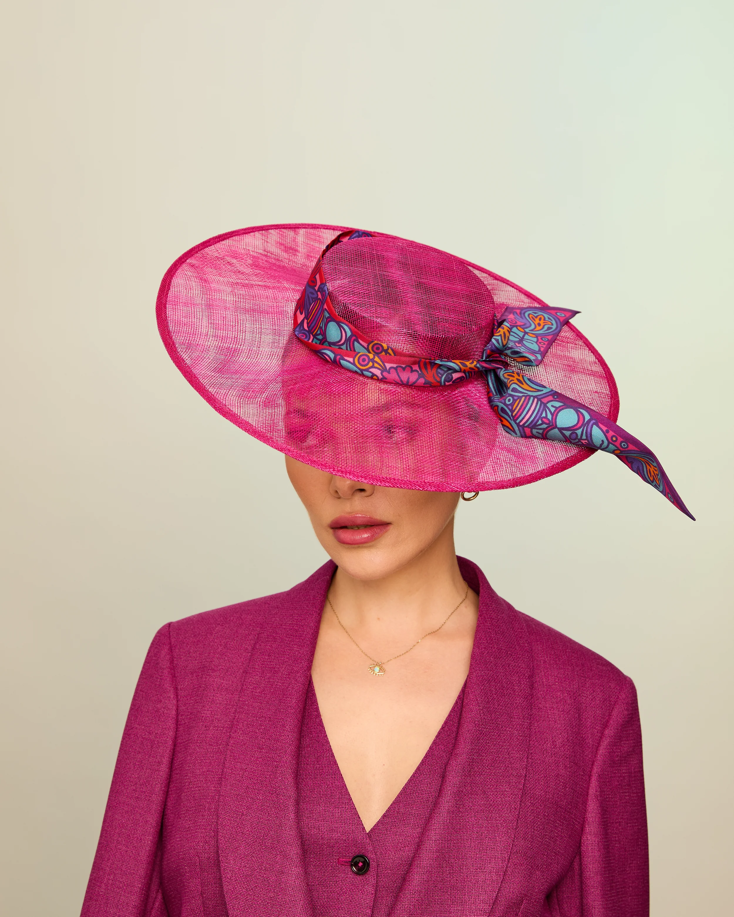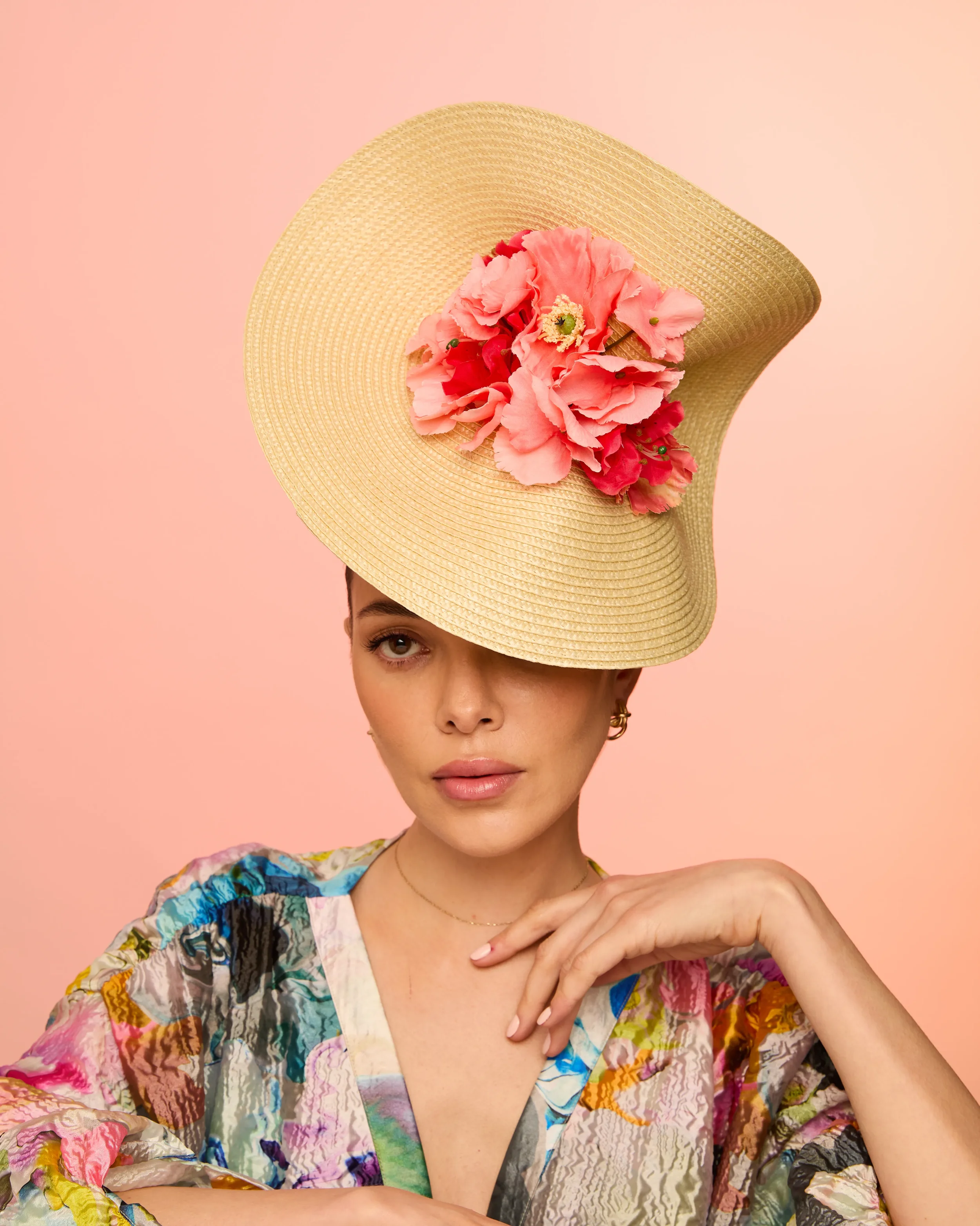 The palette moves from classic black, navy, and ivory to vibrant tones of cerulean, coral, fuchsia, and citrus green, alongside animal print and soft pastel combinations. Some designs remain quietly elegant, while others embrace bold colour and striking structure - perfect for making a statement at Royal Ascot, Ladies Day, weddings, and summer events.