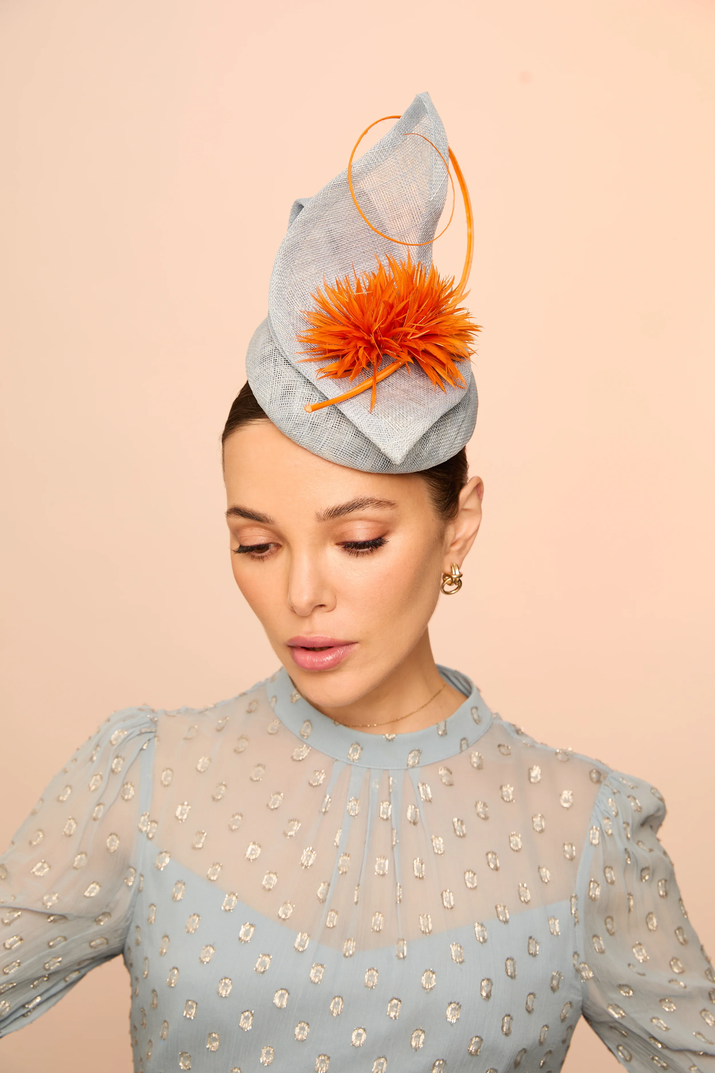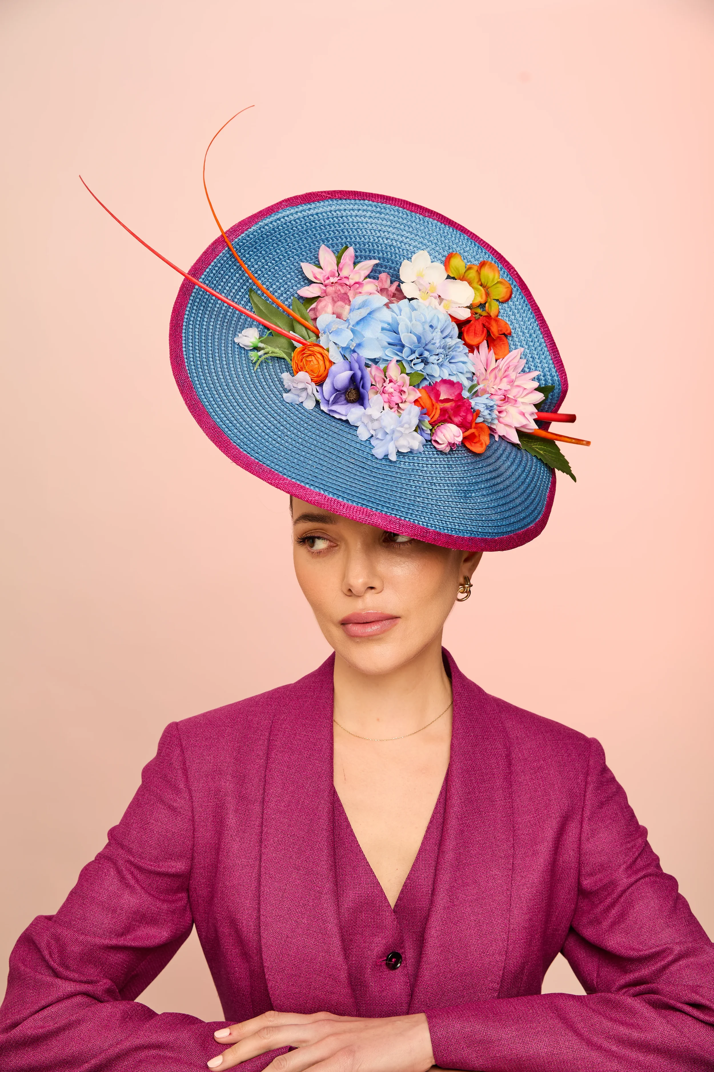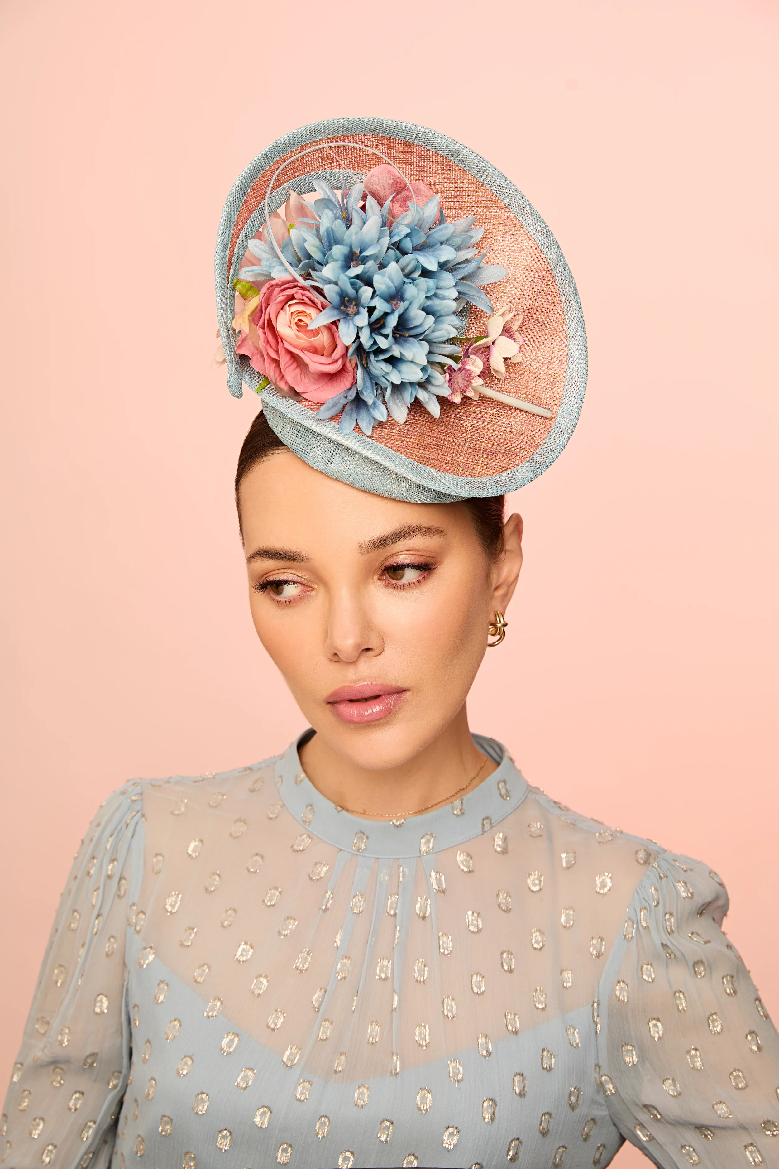 This season brings together a wide range of silhouettes, from timeless boaters and elegant halo pieces to dramatic sculptural designs created to command attention. Delicate featherwork, hand-curled quills, lace, and layered sinamay textures introduce movement and craftsmanship throughout the collection.